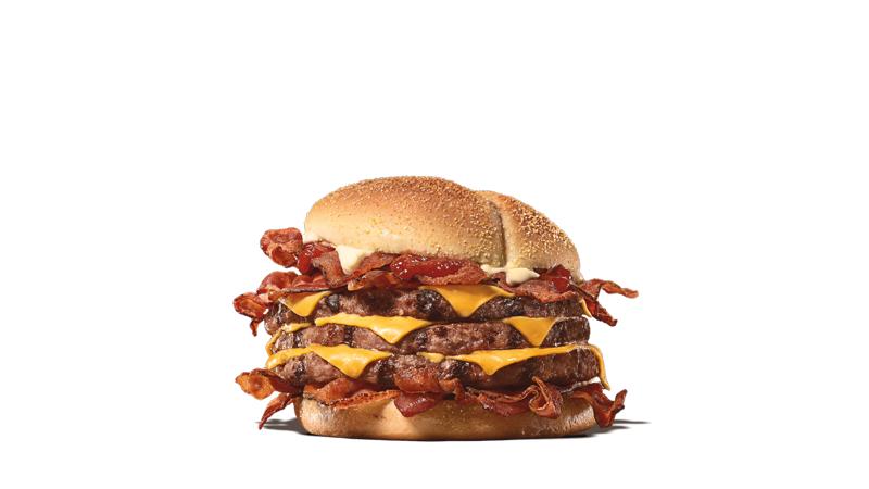 Bacon King 3.0: 3 strati di carne alla griglia, 3 strati di formaggio, 6 fette di delizioso bacon croccante e 6 anelli di cipolla croccanti. Con degli anelli così, i sapori si sposano