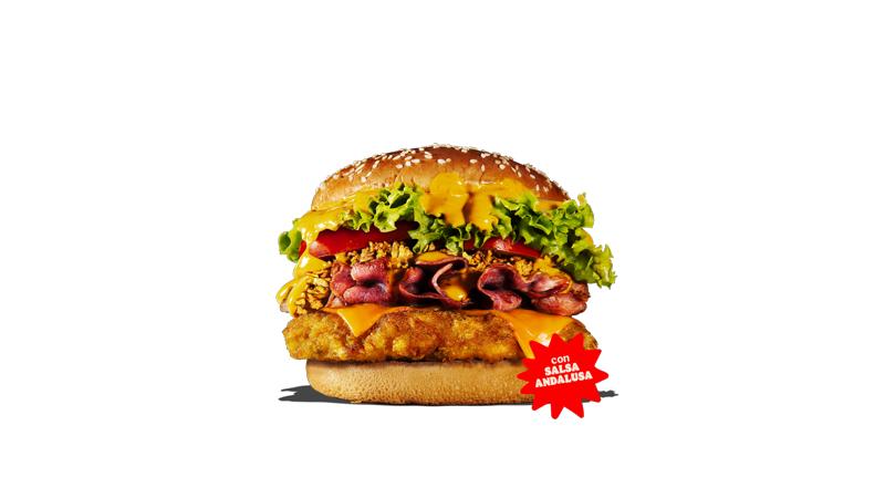 Menù composto da panino King Bang Burger Chicken(BANG! Una cotoletta di pollo dorata che incontra la nostra nuova salsa Andalusa con pomodoro e pepe di Cayenne), porzione di patatine fritte e bibita a sceltra tra: acqua, coca cola, coca cola zero, coca cola lemon zero, fanta, sprite, fuze tea limone, fuze tea pesca, pago arancia.
