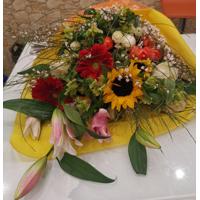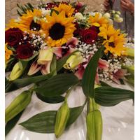 Con Lilium, girasoli, astromelia, gipsofilia