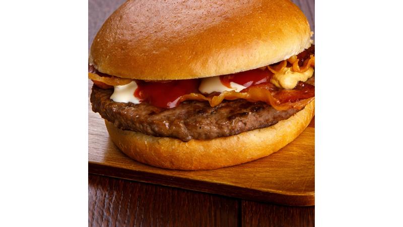 Pane, Hamburger di manzo 150g, speck croccante, senape, ketchup e maionese
