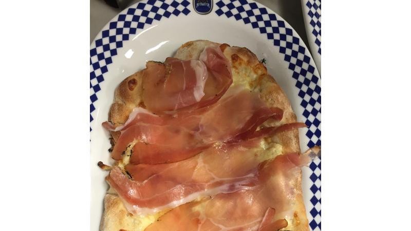 Base pinsa, Mozzarella, speck IGP, formaggio