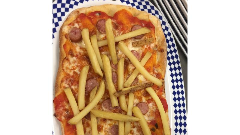 Pane, Hamburger di manzo 150g, speck cotto, formaggio, pomodoro, cipolla croccante, rucola e maionese